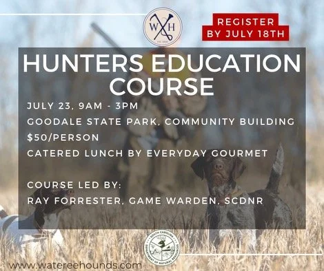 The Wateree Hounds open the 2025 season at MacBurn Lodge with our first hunt alongside new huntsman Tony Gammell. Cast at 9:00 AM sharp, followed by a light pitch-in breakfast at the lodge.